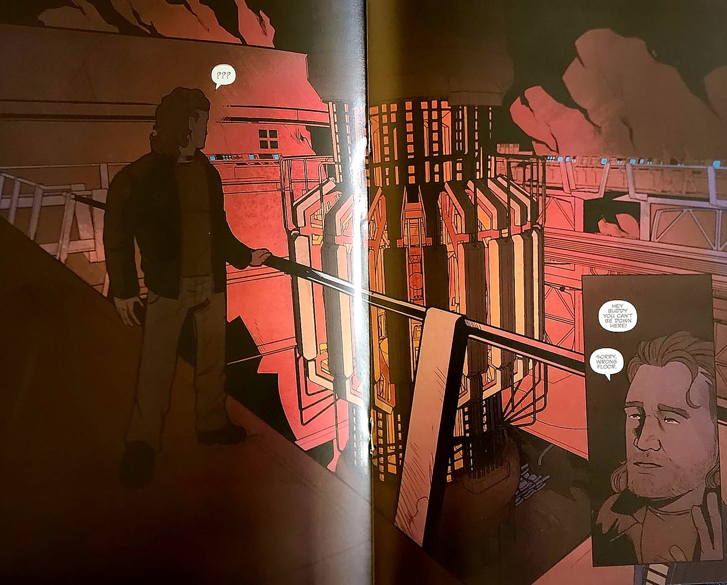 Sebastian Piriz’s art is clean and dark and displays a world that’s “normal”, real and yet shadows abound the science at work is both old-school industrial while also being alien and futuristic. It’s very fitting, though personally I preferred the flashback artist, Gonzalo Ruggieri, who illustrates a literal couple of pages per issue, slowly stringing together scenes from the past that will inform the happenings of the present. And then Ruggieri handles the art for the entirety of Issue #4, which gives the full backstory of the conspiracy theorists, and how they came to be in the situation they find themselves in the present.