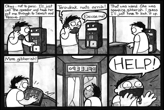 But it’s equally difficult to consume a Shiga work and not start to buy into the hype, at least a little bit. Shiga is a singular artist and storyteller working in the comics medium. His first significant work was Fleep, a story about a man buried in a phonebooth with only a phonebook in a foreign language and some change to escape. (You see? Puzzles!)