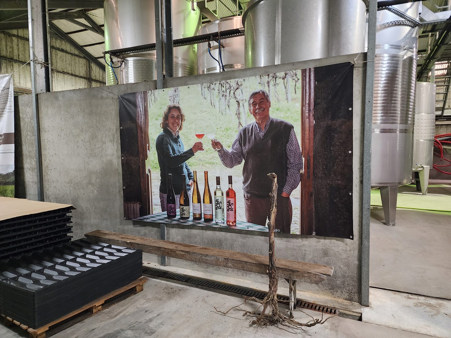 Our first winery visit was to Lourosa in Vinho Verde, with winemaker Joana de Castro. Her father founded the winery and pioneered the LYS vine training system which exposes the most number of grapes to air and sun as possible - a good thing in a region as cool and wet as the Vinho Verde!