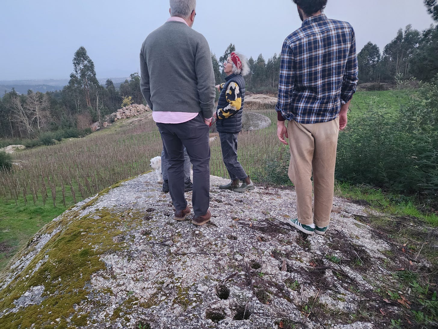 One of the stones was drilled into (see above pic) to turn it into a lagar. They’ll cover it, then foot stomp the grapes on the rock, let the juice drain into the rock, and gravity carries it through the rock and into the winery!