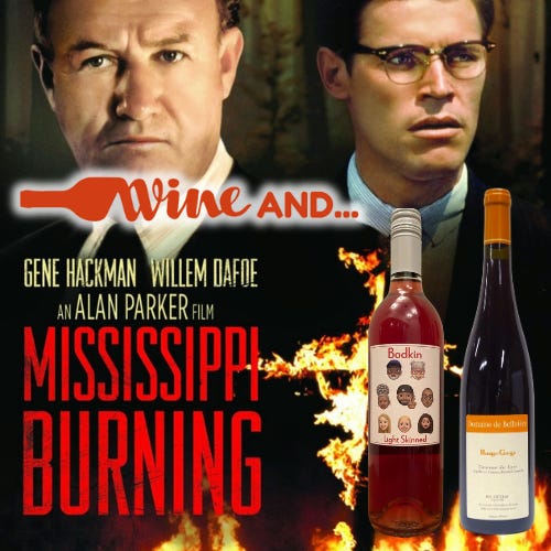 But ultimately, I needed a wine of hope to pair with MISSISSIPPI BURNING. And I found it in Chris Christensen’s Bodkin Wines’ 2022 “Light Skinned” Zinfandel. A black-owned winery, with a winemaker of mixed race parents who himself married mixed race. You can see the family tree on the bottle, and Zinfandel is a crowd pleasing, easy drinking wine, and this dark rose is only 36 hours on the skins, keeping it “light skinned” and even easier and chillable.