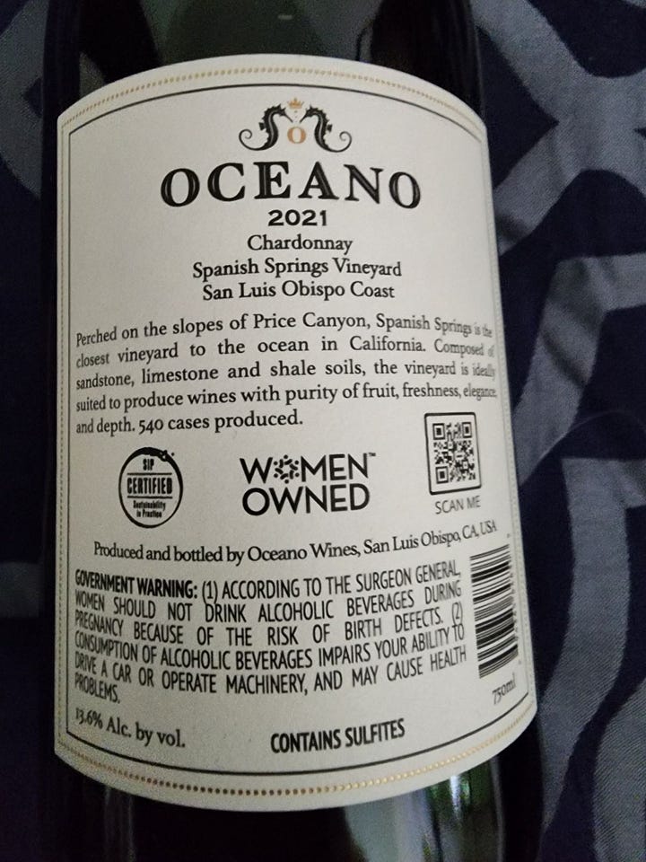 BONUS: 2021 Oceano Full-Alc Chardonnay, San Louis Obispo, California - $45
