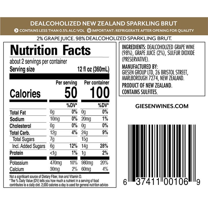1) Giesen Sparkling Brut Zero, New Zealand $19.99
