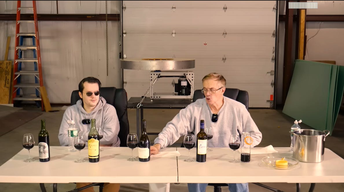 Taste Test of thier re-mixed wine against the original Franzia they made it from + 4 additional bottles of fine wine ranging between $7 - $100 begins at 1:26:56