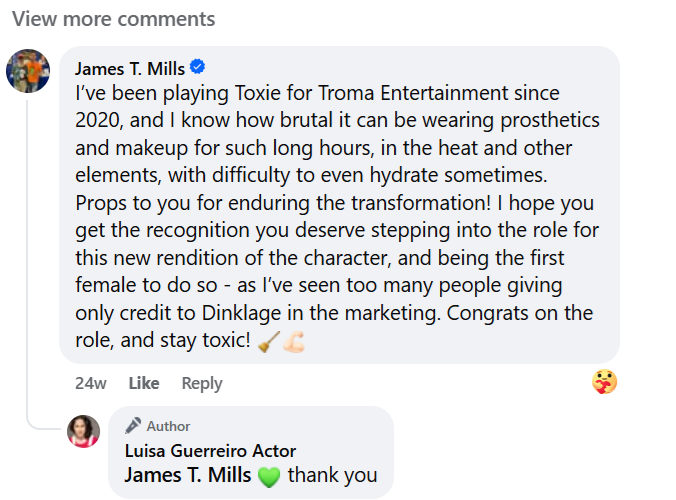 TOXIC AVENGER was directed by Macon Blair and stars Peter Dinklage, Luisa Guerreiro (remember that name, we’re going to come back to her in just a moment), Jacob Tremblay, Taylour Paige, Elijah Wood, Julia Davis, Kevin Bacon, and Jonny Coyne. It was produced by Legendary Pictures and debuted at Fantastic Fest and Beyond Fest in 2023, only to spend years in limbo, with few distribution offers and even one producer supposedly declaring it “unreleasable!”