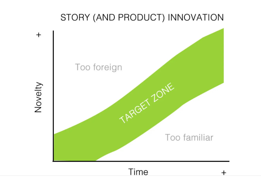 I found this on LinkedIn. It essentially says that audiences crave originality, but not too much, or else they get bored. It’s a fine line, which is why new stories within familiar licensed IPs are a safe bet.