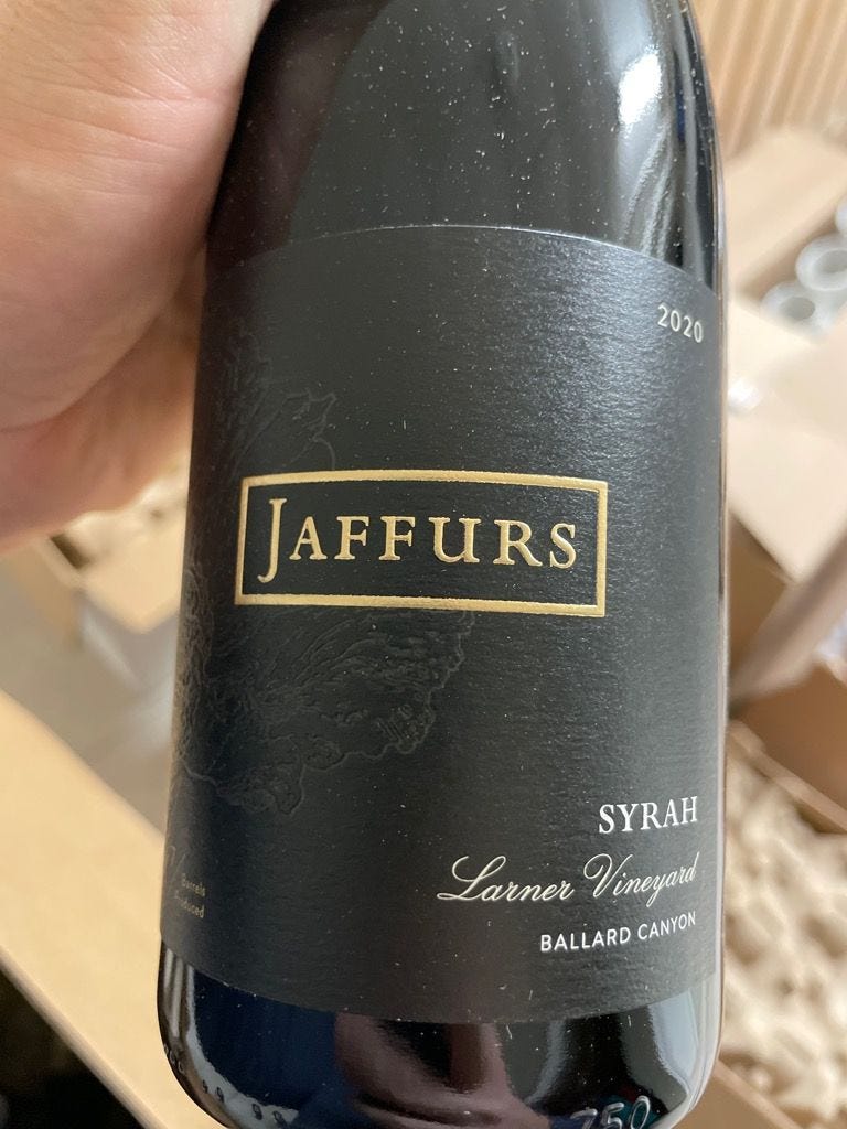 I chose a Syrah from Santa Barbara - 2020 Jaffurs Syrah, Larner Vineyard. Jaffurs single vineyard Syrahs are wonderfully meaty and robust for the cooler climate of Santa Barbara, yet still maintains the telltale acidity and salinity of the terroir. Larner in particular gives flavors of game, black olives, licorice, and smoke.