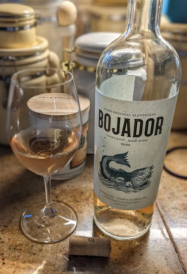 Personally, I chose the Bojador Rose, from Alentejo, Portugal. A blend of Arrogonez (the Portugese name for Tempranillo), and Port grapes Touriga Nacional and Trincadeira, this is a lovely, earthy, spice-driven rose with darker fruit flavors than typical strawberries and cream. Here we get something a little more grounded, a little more tart and layered, but still for all of that a classic rose at its core.
