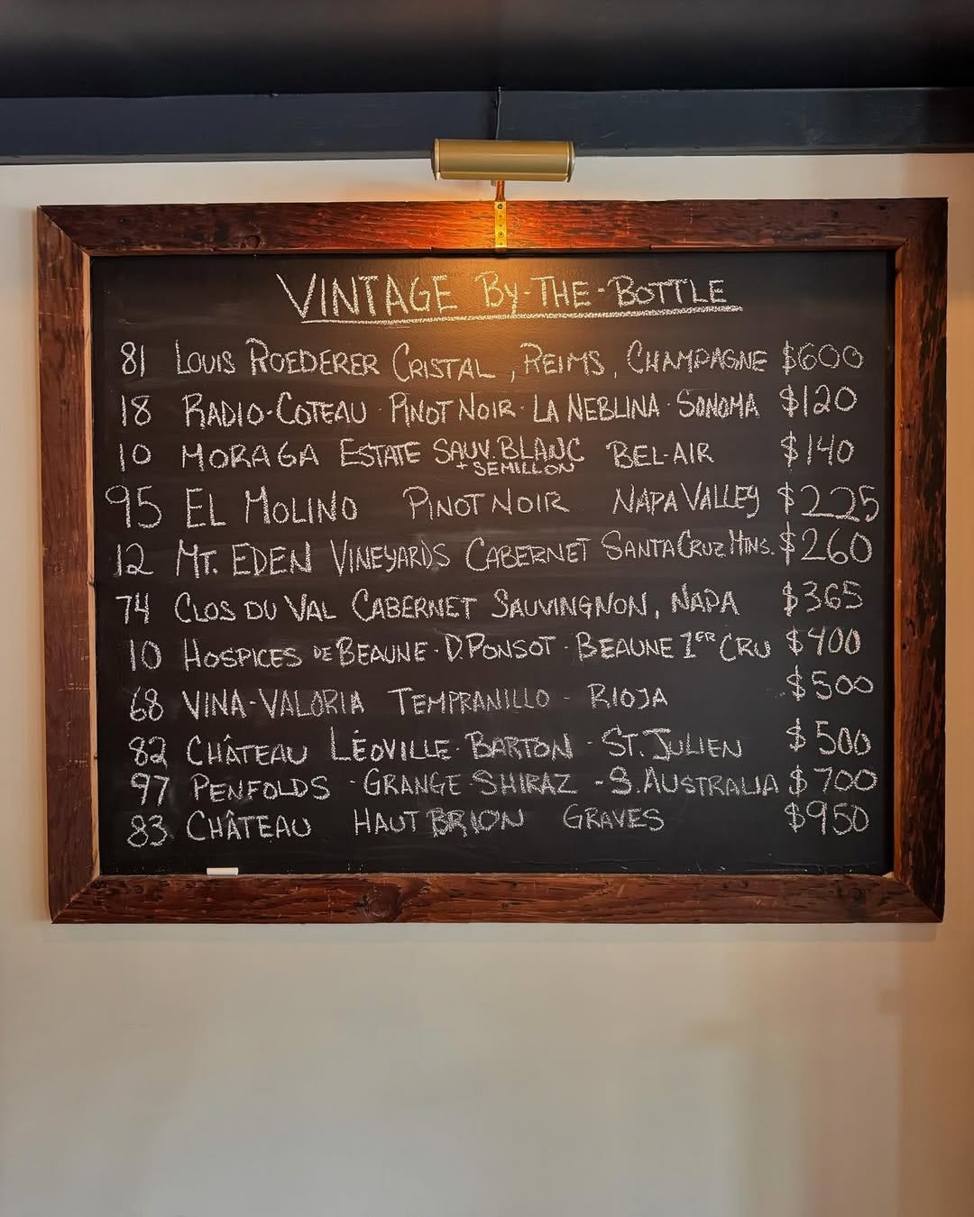 In most cases, they won't open an old bottle unless someone / a table commits to a minimum of 2 glasses. And then they bet they can sell the rest in glasses or partial glasses while it’s still good. This means any consumer can experience a 1986 Margaux or 1992 Australian Shiraz or 2002 Bourgogne Blanc for a price they can afford. $50 per glass? Or $25 per half glass? Or $12.50 per quarter glass? It's marvelous. And the craziest thing is how it seems so crazy and out-of-the-box.